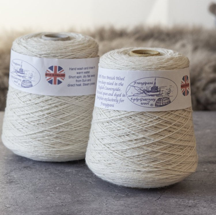 Frangipani Guernsey wol is een robuuste, slijtvaste wol die oorspronkelijk werd gebruikt voor traditionele Guernsey truien. Het garen voelt zacht aan tijdens het breien, behoudt zijn vorm en is ideaal voor truien die jarenlang mooi blijven.
